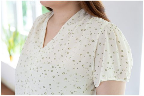 เสื้อทำงานคอวี ลายผ้ากระจุ๋มกระจิ๋ม ลายดอกไม้เล็กๆทั่วตัว ต่อแขนกระบอก จับจีบบ่าและต้นแขนเบาๆ คลาสสิกแบบละมุนละไม ใส่ได้ตลอดกาลจริงๆค่าา