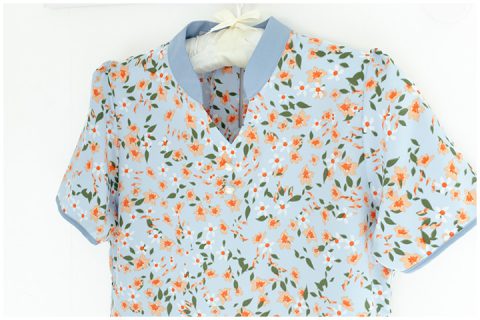 เสื้อทำงานสวยเก๋ แต่งขอบคอสีพื้น ผ่าวีสั้นๆด้านหน้า ตัวเสื้อเป็นผ้าอิตาลีเนื้อนิ่มลื่น แขนสั้นกุ๊นขอบแขน ด้านหน้าแต่งกระดุมสีขาวมุกเม็ดกลม ผ้าพิมพ์ลายดอกไม้ รุ่นนี้ทรงจะคอดเอวนิดนึง ใส่สวยเพรียวค่ะ