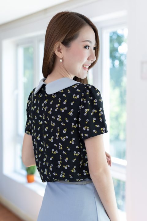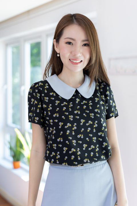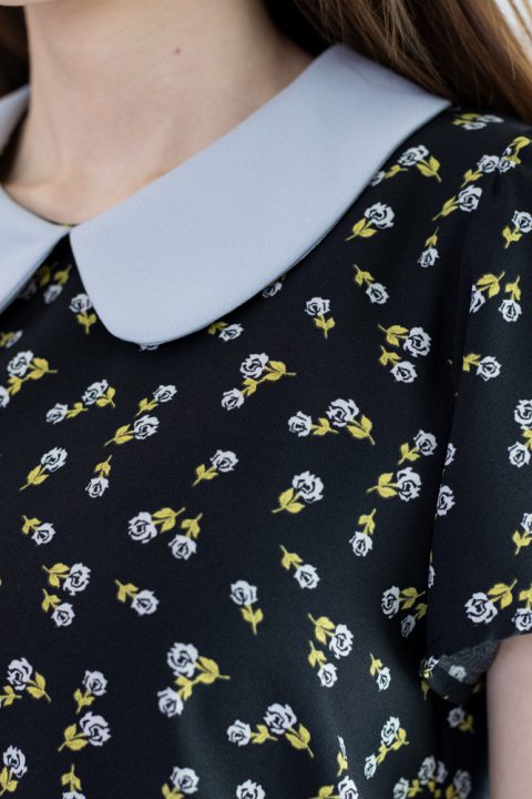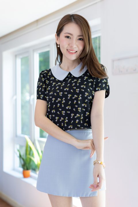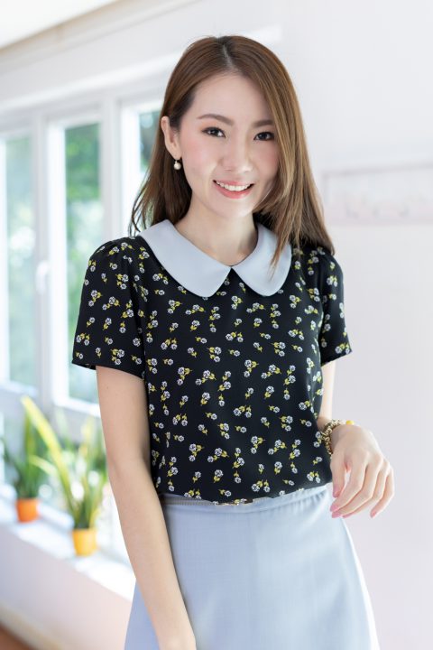 เสื้อสวยเรียบร้อย พิมพ์ลายดอกกุหลาบจิ๋ว ต่อปกบัวสีพื้น ผ่าหยดน้ำติดกระดุมคอด้านหลัง แขนสั้นจับจีบหัวไหล่เบาๆ ใส่ทำงานทรงสวย ผ้าเนื้อดี นิ่มสบาย ใส่สวยตลอดกาลเลยค่ะ