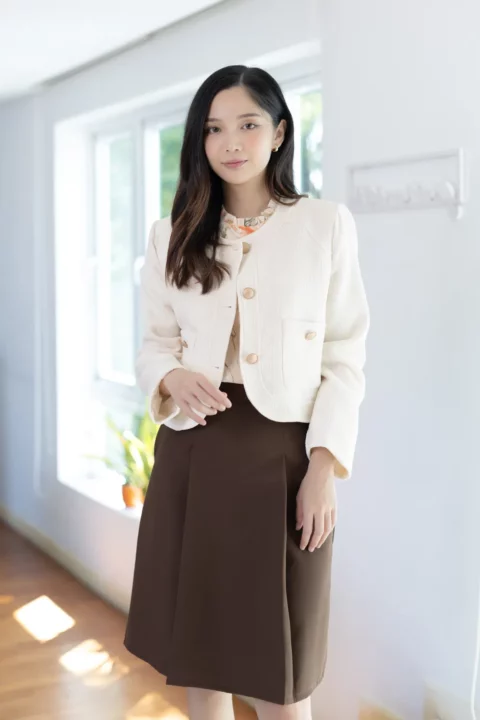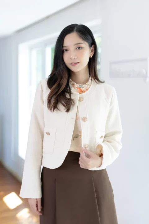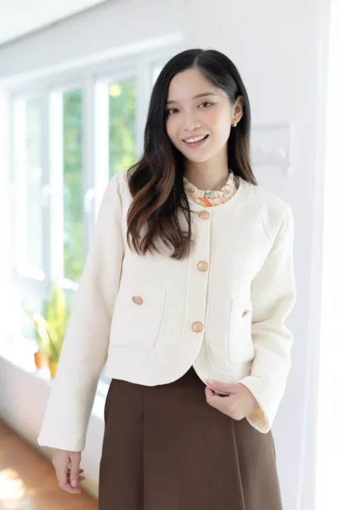 ขนาดสินค้า : รอบอก 40”, คอกว้าง 6.5”, ไหล่ 14.5”, แขนยาว 22.5”, รอบวงแขน 21”, รอบปลายแขน 11”, ยาว 19”, รอบชายเสื้อ 40” (ซับในเต็มตัว)