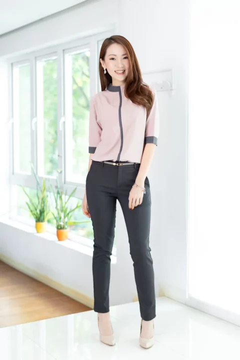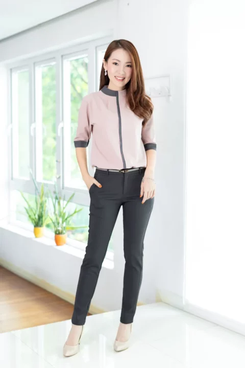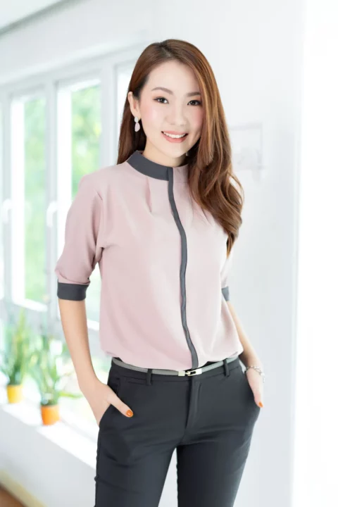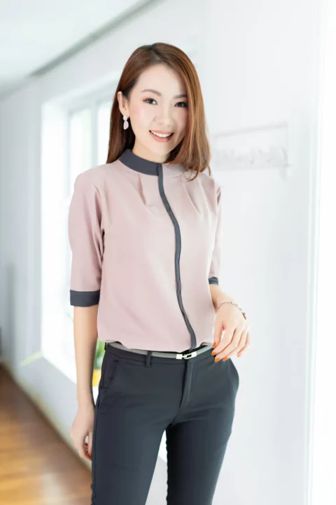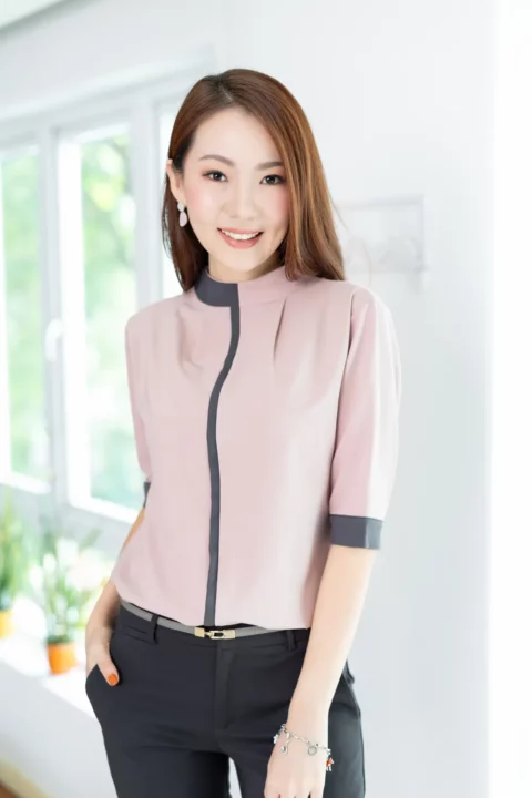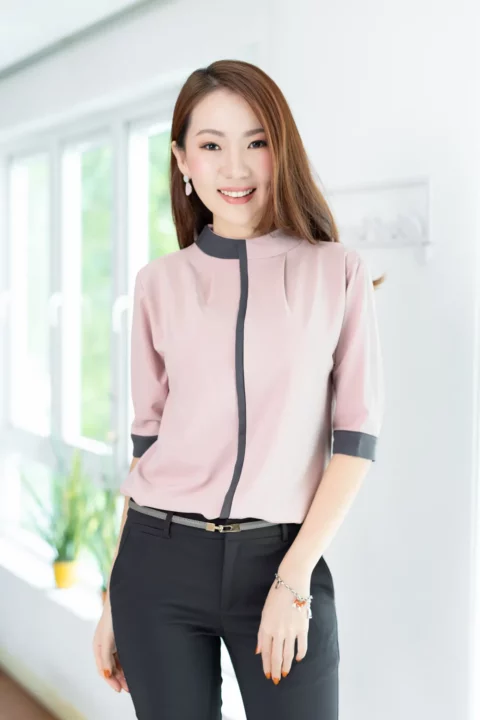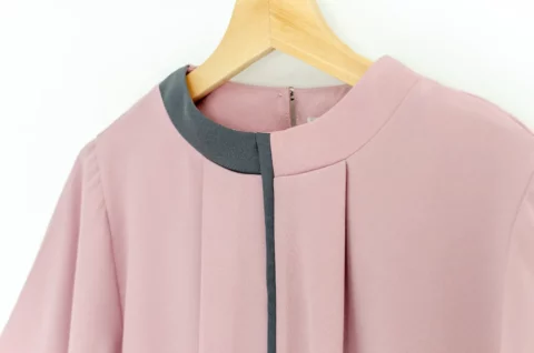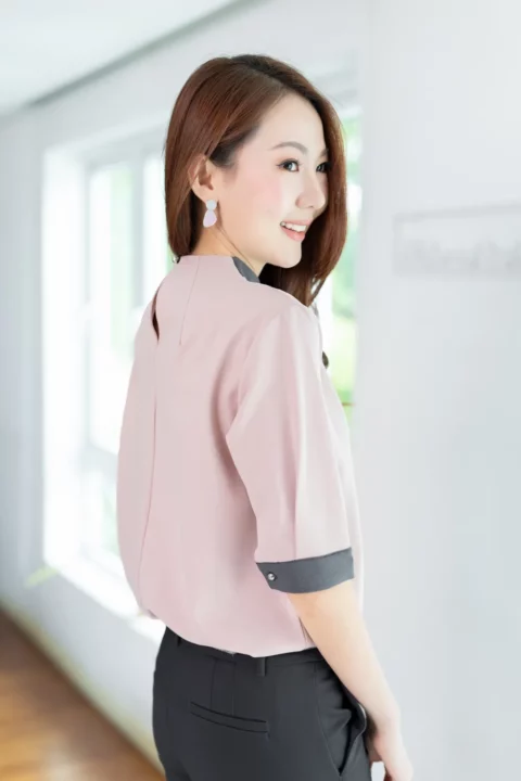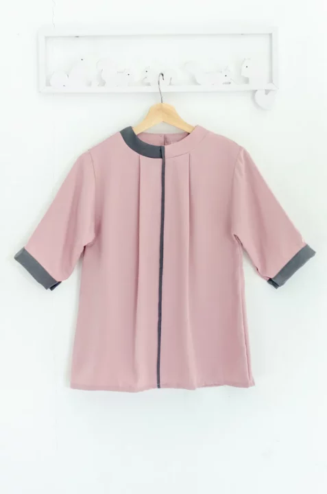 MN0326 High Neck Blouse with Grey Trim – Faded Pink