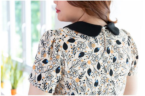 เสื้อสวยเรียบร้อย พิมพ์ลายกราฟิกใบไม้ ต่อปกบัวสีพื้น ผ่าหยดน้ำติดกระดุมคอด้านหลัง แขนสั้นจับจีบหัวไหล่เบาๆ ใส่ทำงานทรงสวย ผ้าอิตาลีเนื้อดี นิ่มเนียน สวยตลอดกาลเลยค่ะ