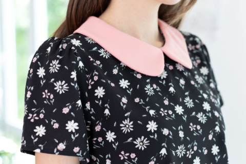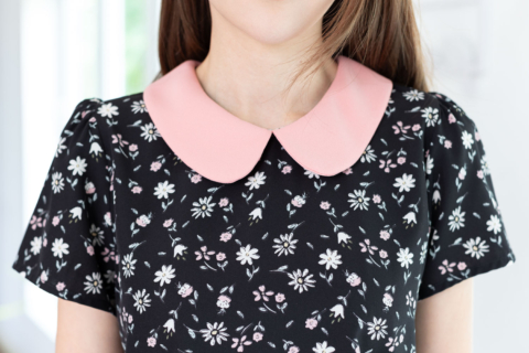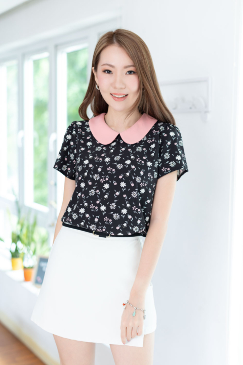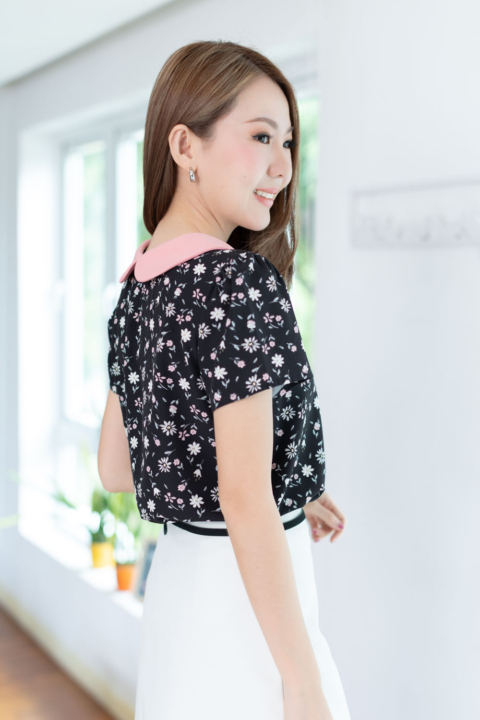 MT0101 Peter Pan Collar Daisy Blouse – Black-Pink