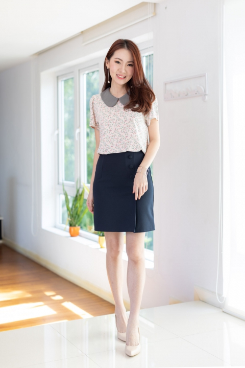 เสื้อสวยเรียบร้อย พิมพ์ลายดอกไม้จิ๋วในสวนบานสะพรั่ง ต่อปกบัวสีพื้น ผ่าหยดน้ำติดกระดุมคอด้านหลัง แขนสั้นจับจีบหัวไหล่เบาๆ ใส่ทำงานทรงสวย ผ้าไหมอิตาลีผิวเรียบเนียน สวยแบบนวลๆ เก๋ๆนุ่มๆค่า