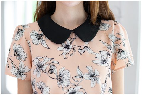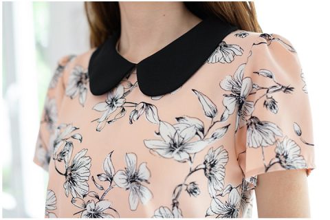 เสื้อสวยเรียบร้อย พิมพ์ลายดอกไม้ ต่อปกบัวสีพื้น ผ่าหยดน้ำติดกระดุมคอด้านหลัง แขนสั้นจับจีบหัวไหล่เบาๆ ใส่ทำงานทรงสวย ผ้าอิตาลีเนื้อดี นิ่มเนียน สวยตลอดกาลเลยค่ะ