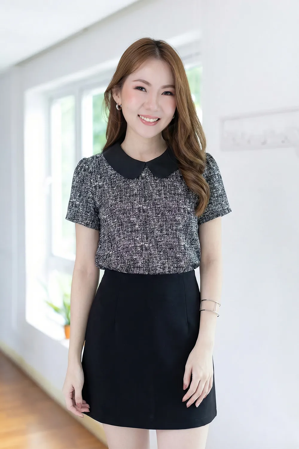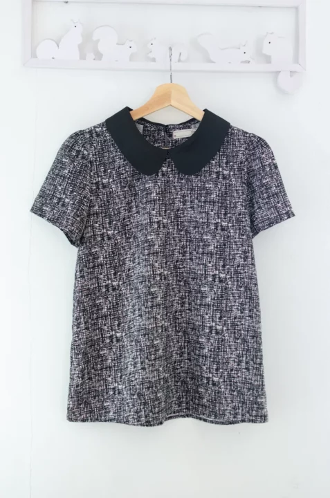 เสื้อสวยเรียบร้อย พิมพ์ลายกราฟิก ต่อปกบัวสีพื้น ผ่าหยดน้ำติดกระดุมคอด้านหลัง แขนสั้นจับจีบหัวไหล่เบาๆ ใส่ทำงานทรงสวย ผ้าเนื้อดี นิ่มสบาย ใส่สวยตลอดกาลเลยค่ะ