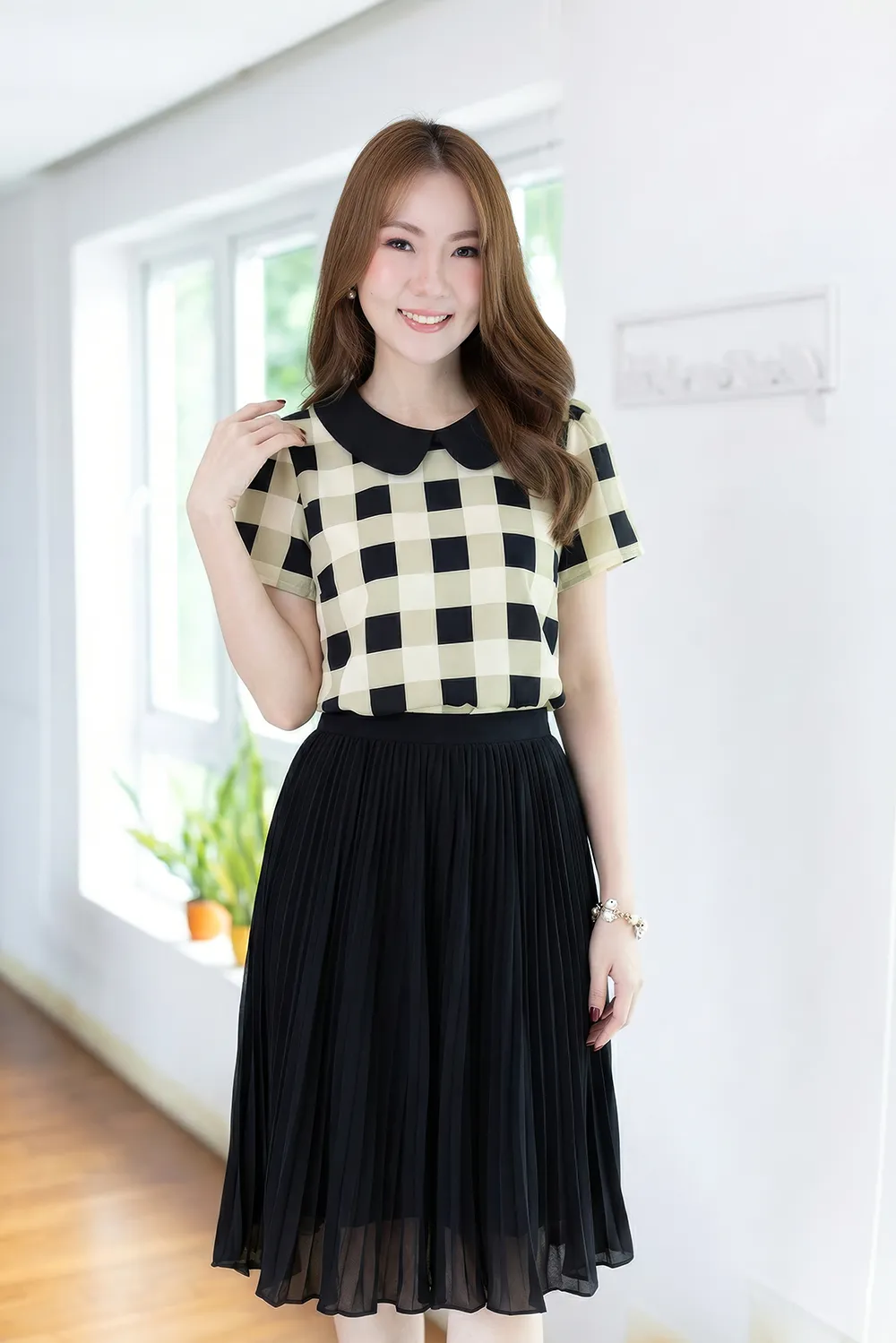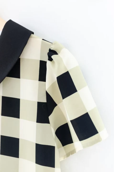 MT0101 Peter Pan Collar Plaid Blouse – Grey - Size 36