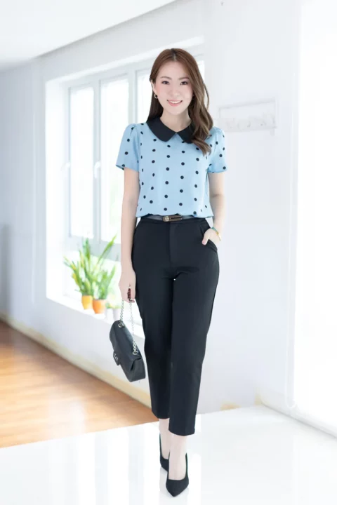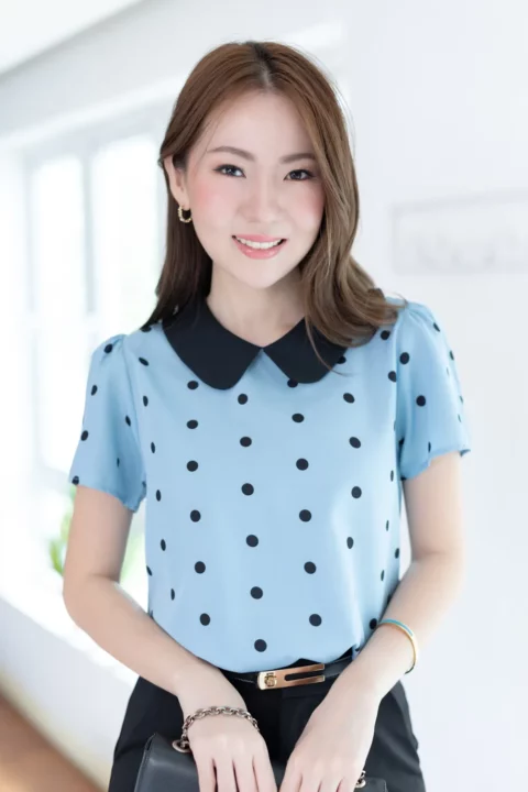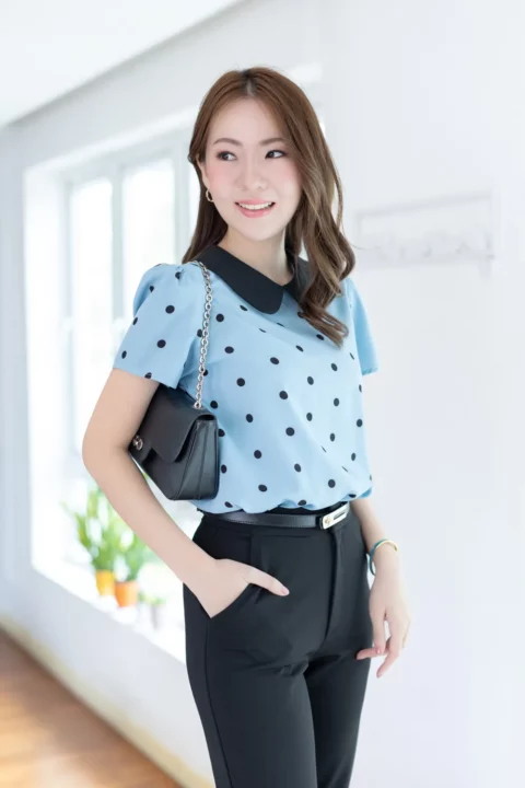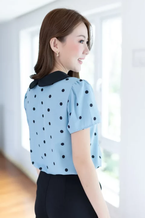 MT0101 Peter Pan Collar Dot Blouse – Blue