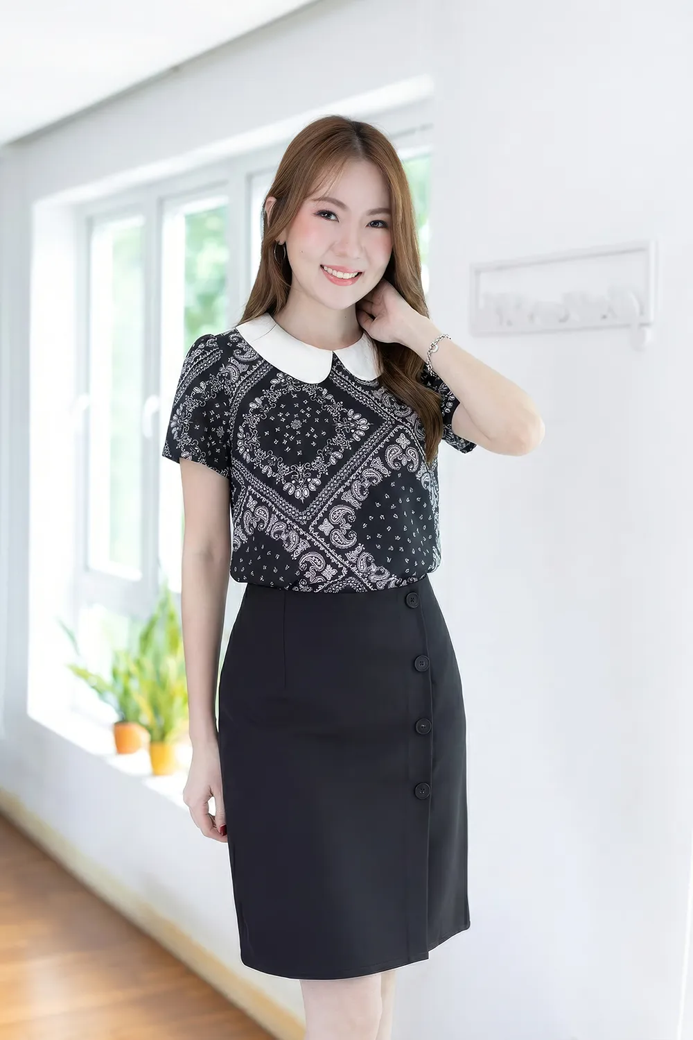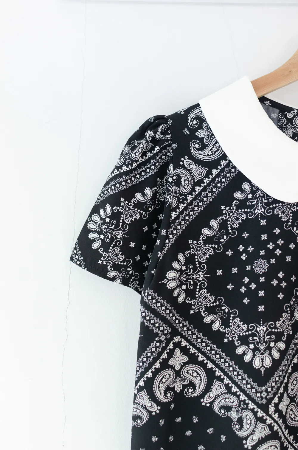 MT0101 Peter Pan Collar Paisley Blouse – Black