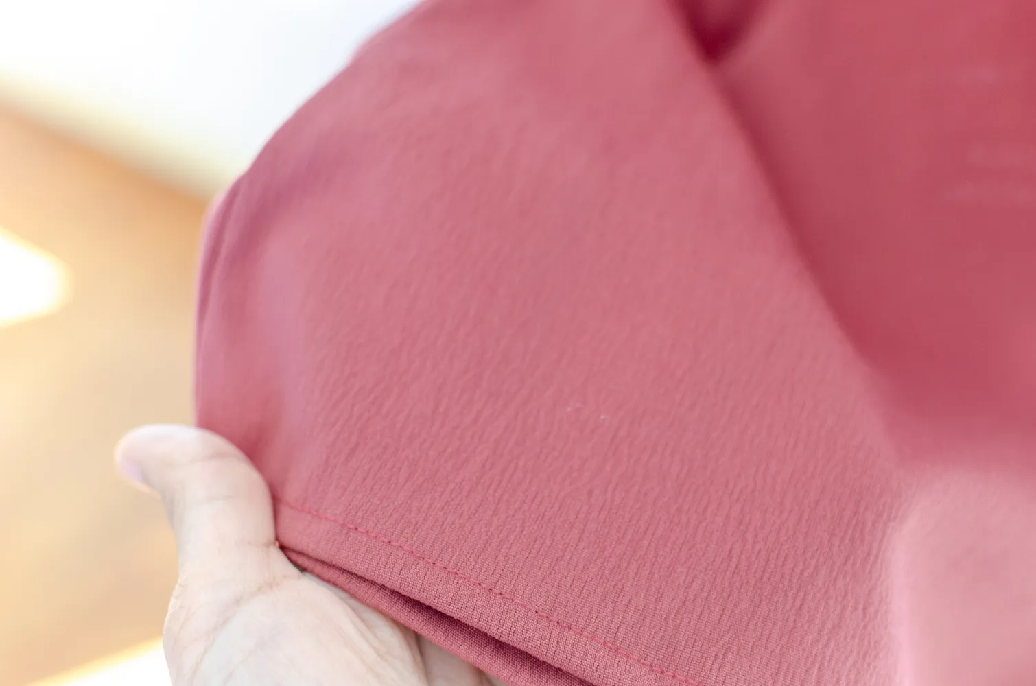 Fabric : โพลีเอสเตอร์อัดย่น เนื้อยืดเล็กน้อย