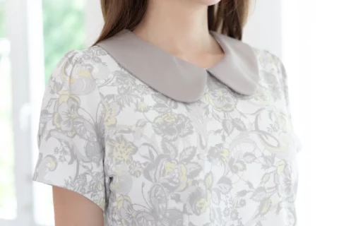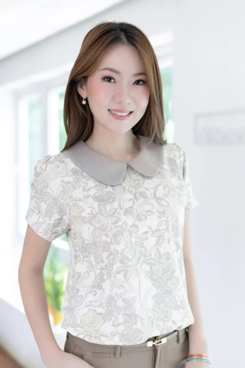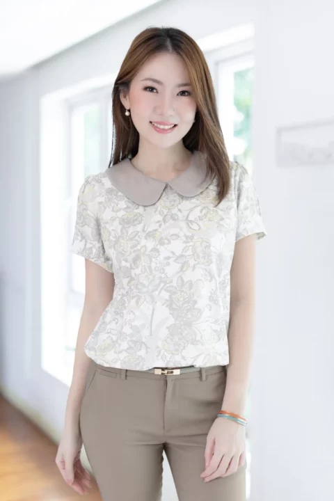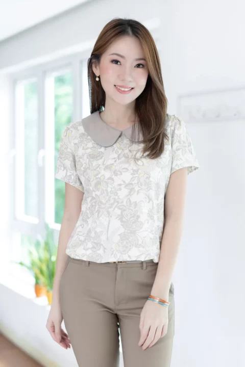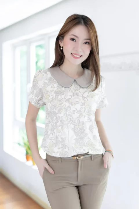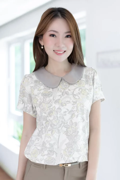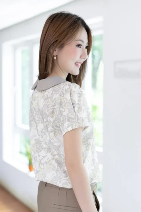 MT0106 Peter Pan Collar Folded Sleeve Floral Blouse – White