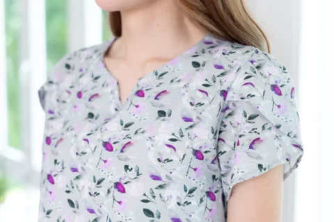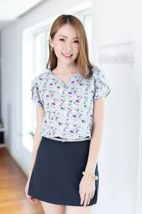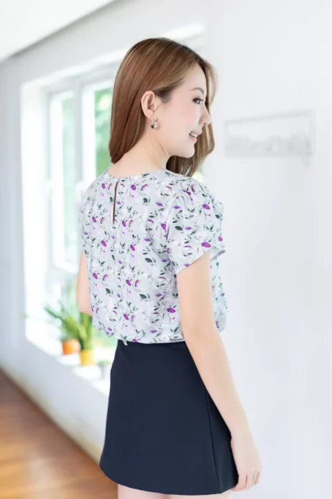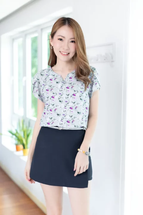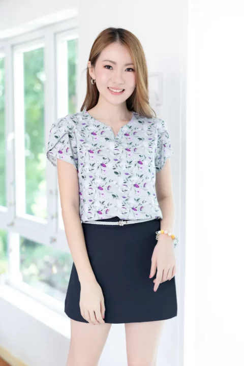MT0202 Petal Sleeve Linen Blouse – Grey
