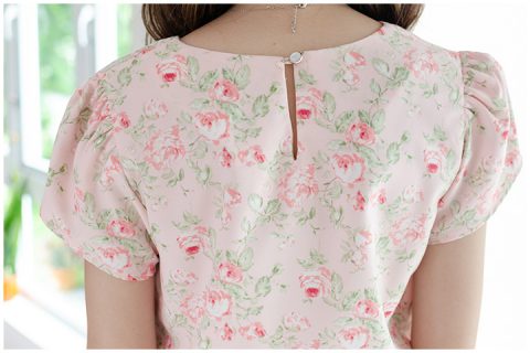 เสื้อทำงานน่ารักๆพิมพ์ลายดอกทั่วตัว คอกลมบากตัววีเล็กๆตรงกลาง ต่อแขนสั้นซ้อนกลีบดอกไม้ ผ่าหยดน้ำหลังติดกระดุมคอ ผ้าไหมอิตาลีเนื้อนิ่มเนียน ทรงสวยคลาสสิกค่ะ