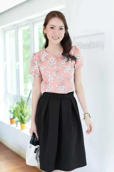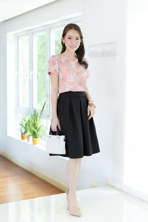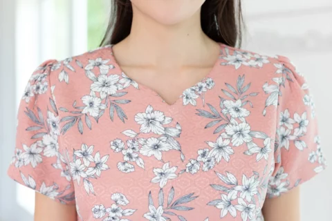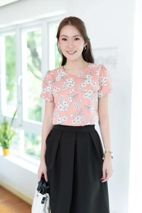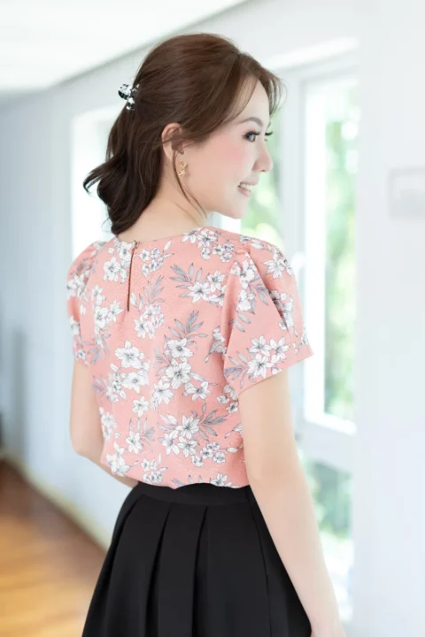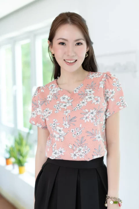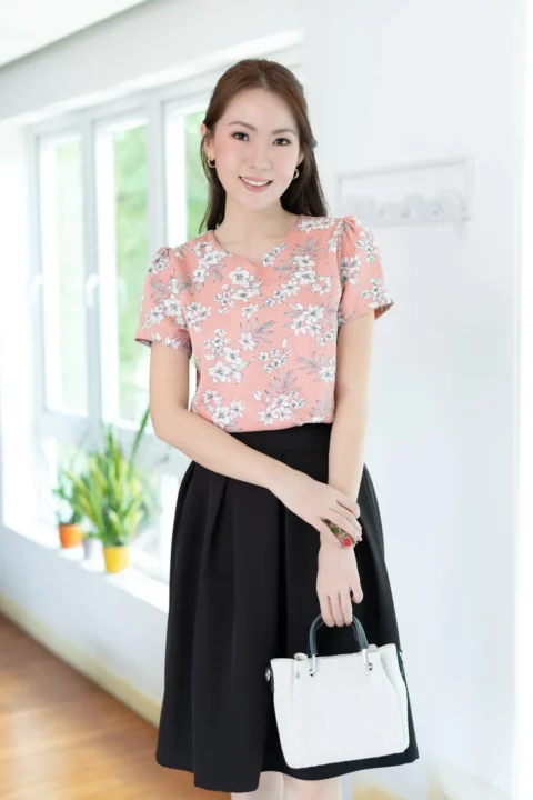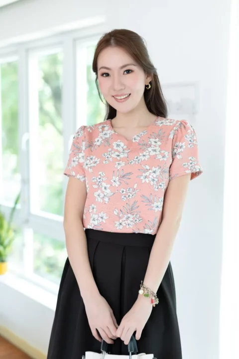 เสื้อทรงคอกลม บากตัววีเล็กๆตรงกลาง ต่อแขนสั้นจับจีบที่ปลายแขน ดูพองนิดๆ ผ่าหยดน้ำหลังติดกระดุม ทรงใส่ง่าย ตัดเย็บด้วยผ้าโพลีเอสเตอร์ผสมทอมีลาย ดูมี Texture ในตัว เวลากระทบแสงบางมุมลายผ้าจะวาวนิดๆ แมทช์กับชิ้นเบสิคไหนๆก็เข้ากันค่ะ