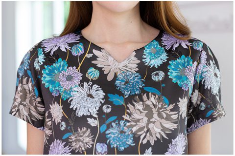 เสื้อทำงานมาแนวเข้มๆ คอกลมบากตัววีเล็กๆตรงกลาง ต่อแขนสั้นจับจีบที่ปลายแขน ดูพองนิดๆ ผ่าหยดน้ำหลังติดกระดุม ทรงใส่ง่าย ลายพิมพ์ดอกไม้ ผ้าเนื้อดี ไม่บางค่า