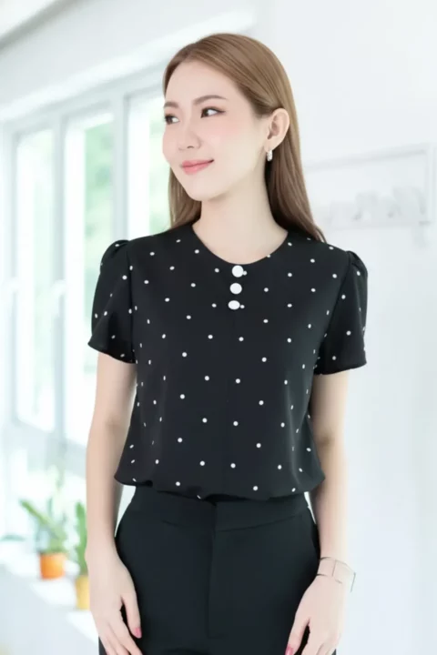 Size 36 – รอบอก 36”, คอกว้าง 6”, ไหล่ 13.5”, แขนยาว 6.5”, รอบวงแขน 18”, รอบปลายแขน 14”, ยาว 22.5”, รอบชายเสื้อ 40”