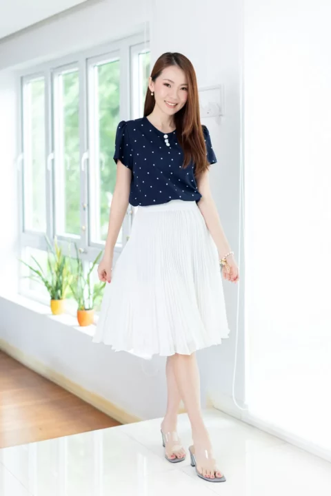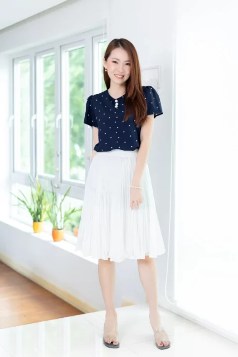 Color : กรมท่าเข้ม ลายจุดขาว