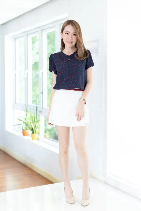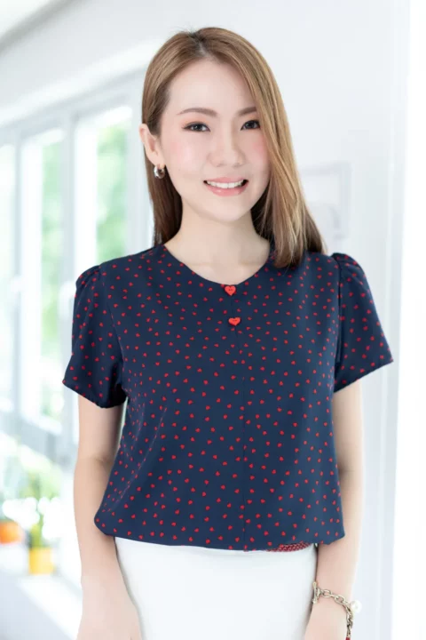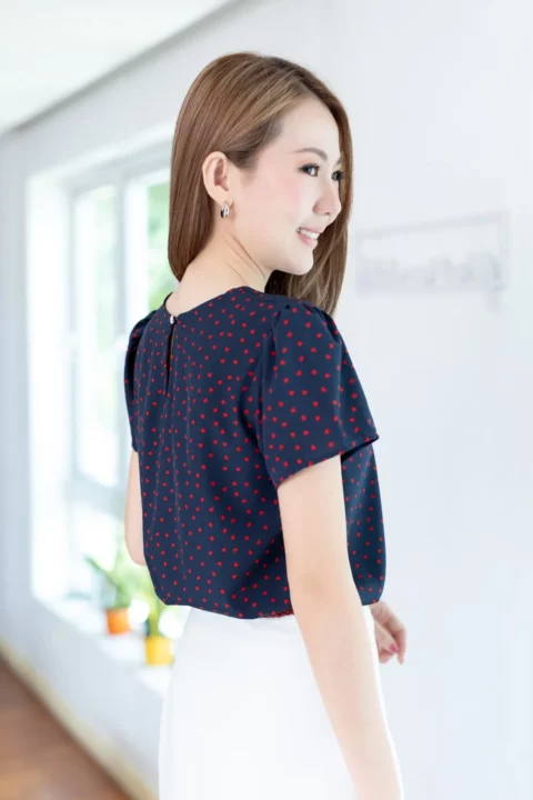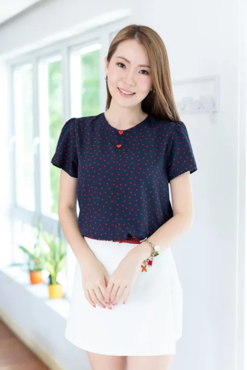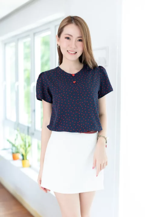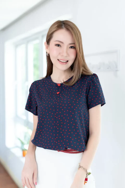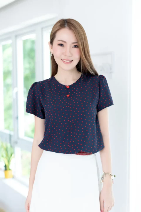 เสื้อทำงานคอกลม แต่งคัตติ้งตะเข็บตรงกลางด้านหน้า เติมกระดุมหลอกเรียงแถวด้านหน้า 2 เม็ด เป็นทรงหัวใจ ❤️❤️ สวยเด่นเลยค่ะ ทรงแมทช์ง่าย ผ้าเนื้อดีใส่สบาย ยับยากรีดง่าย รับประกันความสวยหวาน งานคุณภาพค่ะ