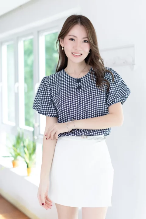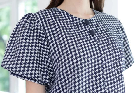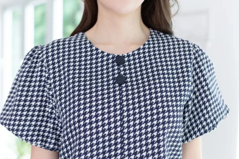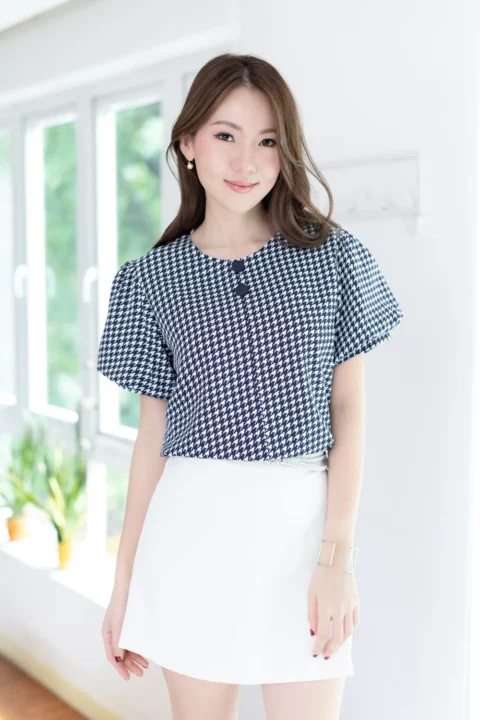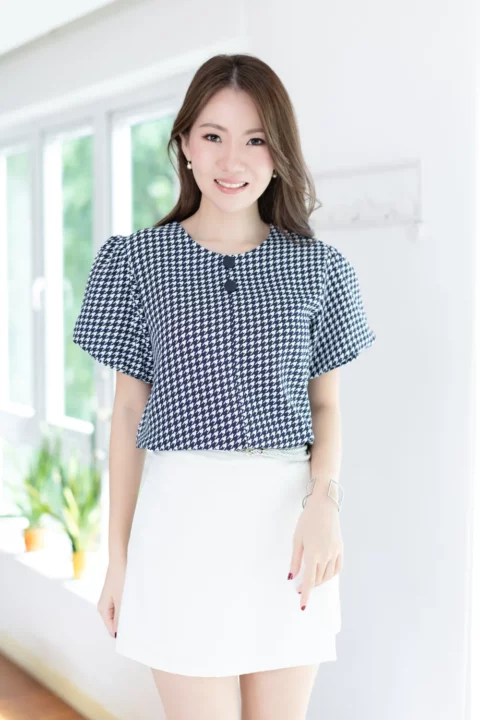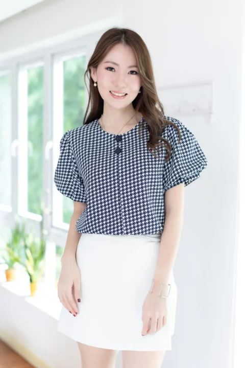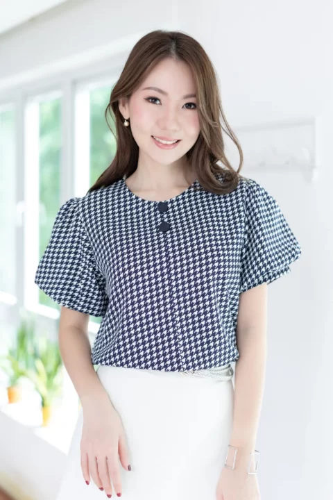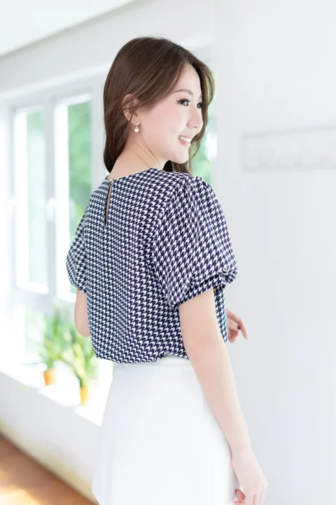 MT0307 Double Button Balloon Sleeve Blouse – Navy Blue Shinori