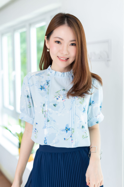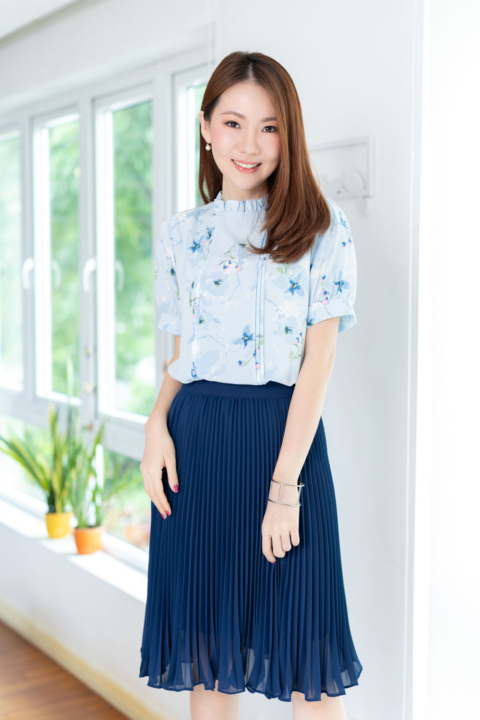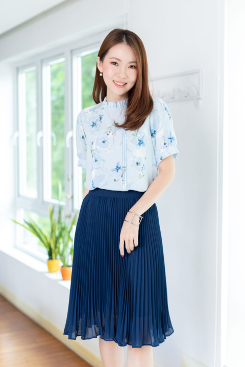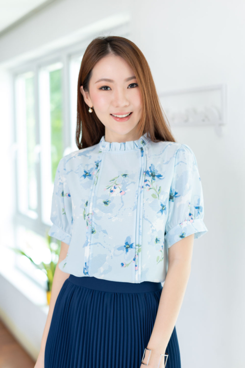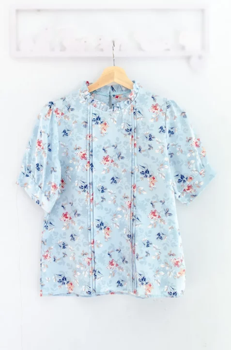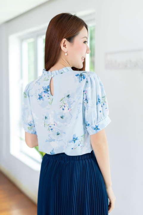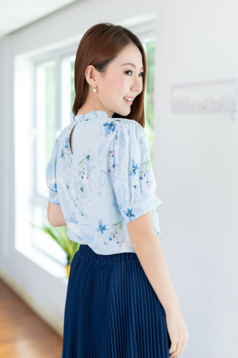 เสื้อทำงานทรงหวาน เสริมความอ่อนโยนคอจีบตั้งนิดๆ ตีเกล็ดตกแต่งด้านหน้า ต่อแขนบอลลูน ผ้าพิมพ์ลายดอกไม้เนื้อดี นิ่ม ใส่สบาย ทรงเสื้อสวยแมทช์แบบหวานๆ ชอบมากค่ะ