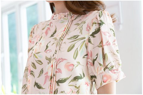 เสื้อทำงานทรงหวาน เสริมความอ่อนโยน คอจีบตั้งนิดๆ ตีเกล็ดตกแต่งด้านหน้า ต่อแขนบอลลูน เนื้อผ้าอิตาลีนิ่มๆ พิมพ์ลายดอกไม้ ทรงเสื้อสวยแมทช์แบบหวานๆเลย