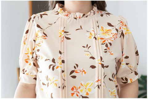 เสื้อทำงานทรงหวาน เสริมความอ่อนโยน คอจีบตั้งนิดๆ ตีเกล็ดตกแต่งด้านหน้า ต่อแขนบอลลูน เนื้อผ้าอิตาลีนิ่มๆ พิมพ์ลายดอกไม้ ทรงเสื้อสวยแมทช์แบบหวานๆเลย