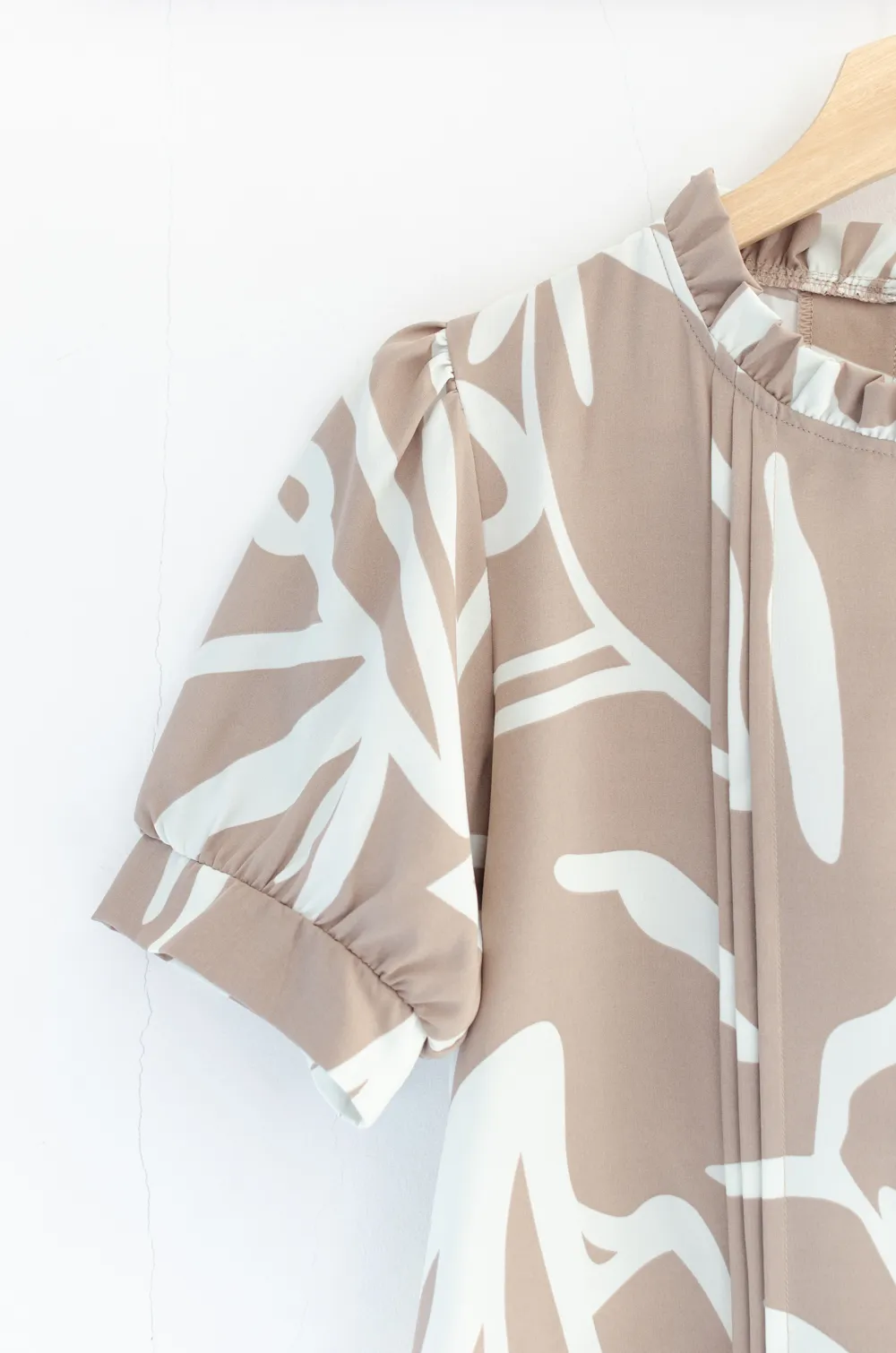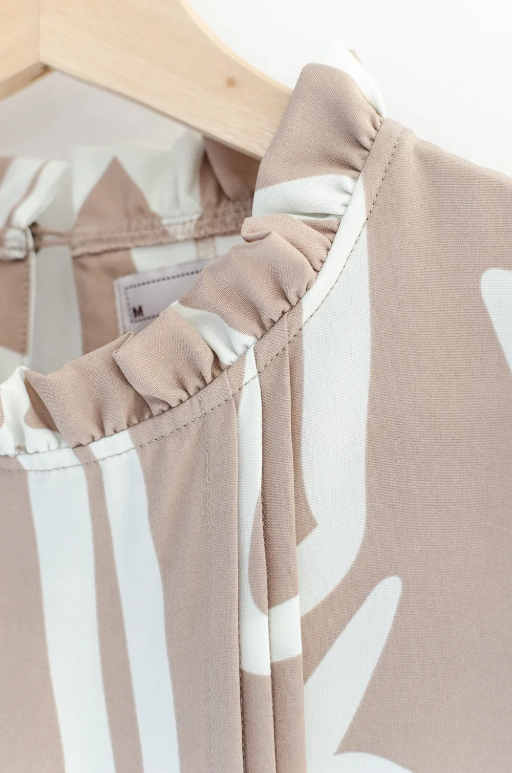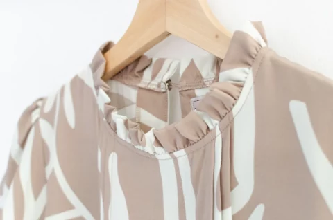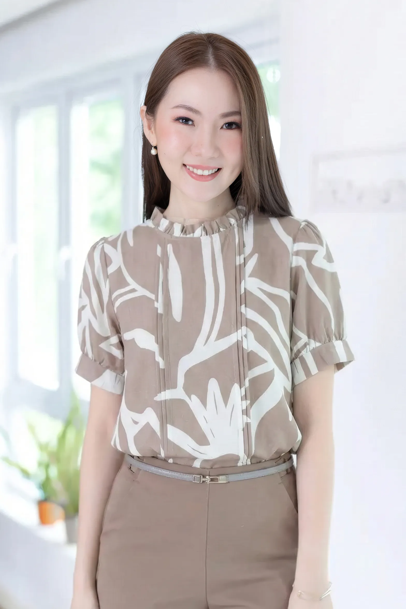 MT0404 Ruff Collar Balloon Sleeve Blouse – Latte