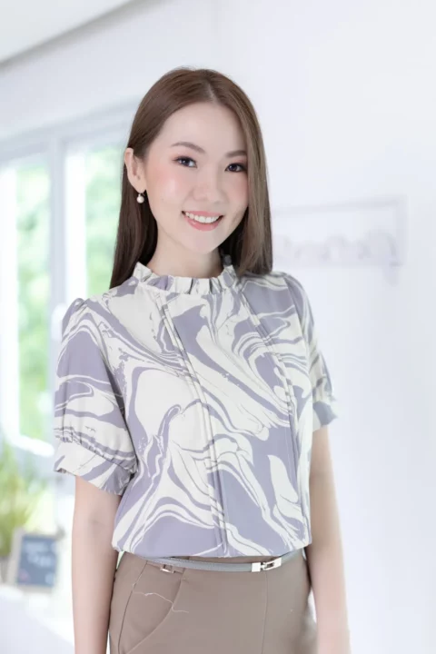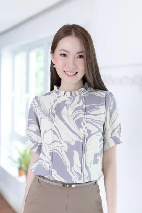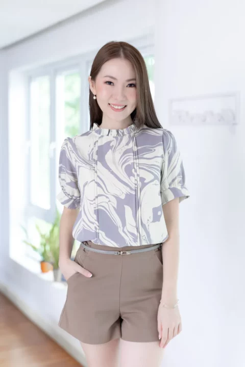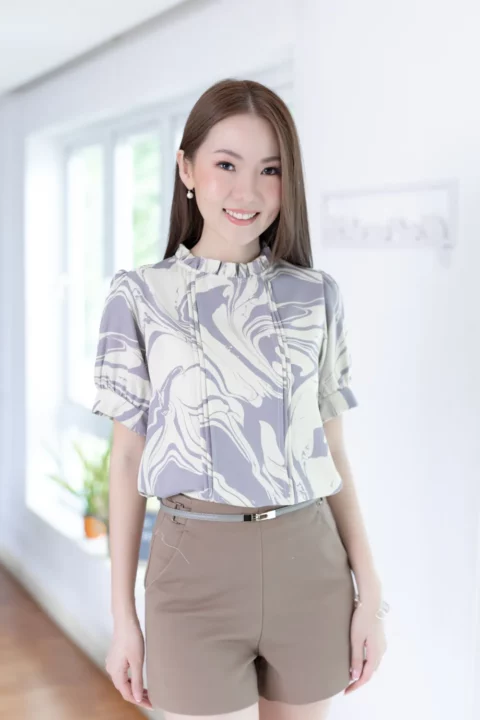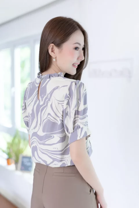 MT0404 Ruff Collar Balloon Sleeve Blouse – Purplish Grey