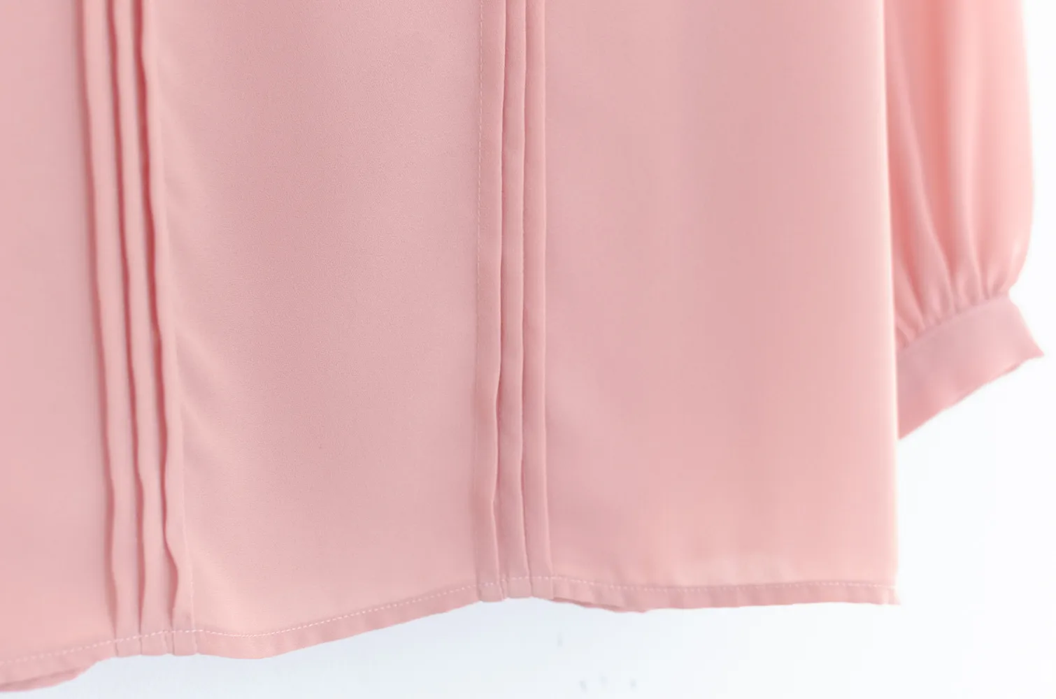 เสื้อทรงหวานมาแบบเรียบหรู แขนสี่ส่วนสุภาพ ใส่ได้หลายโอกาส คอจีบตั้งนิดๆ แต่งเกล็ดยาวด้านหน้า ใช้ผ้าชีฟองเนื้อทิ้งตัวสัมผัสดี คอด้านหลังผ่าหยดน้ำสั้นๆติดกระดุม สวมใส่สะดวก