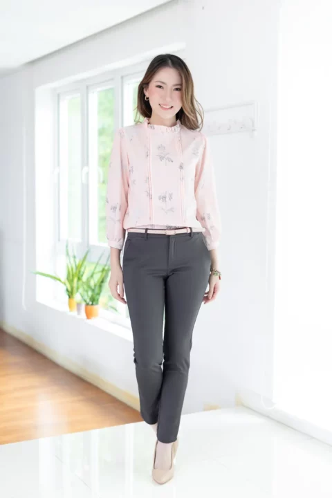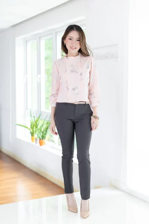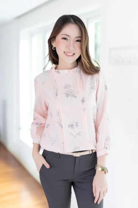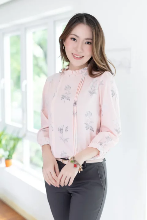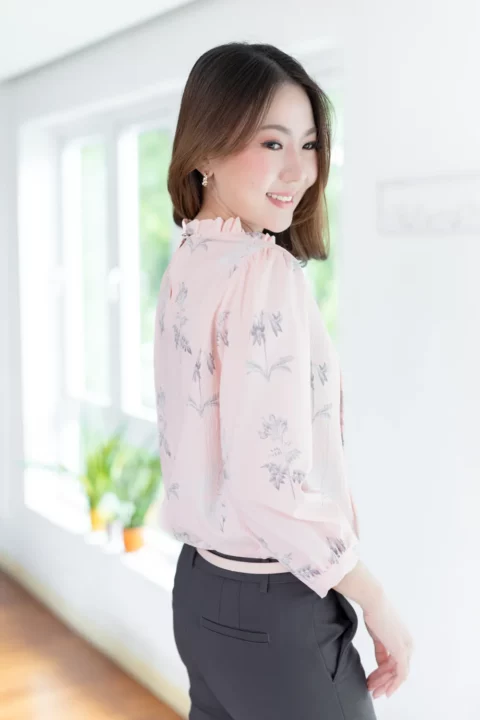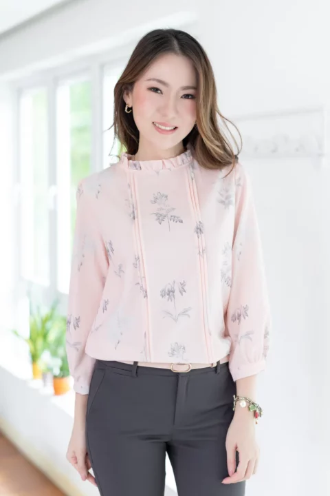 MT0431 Ruff Collar Pintuck Blouse – Light Pink