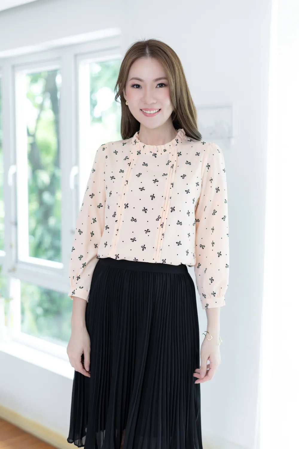Color : นู้ดครีมอมส้ม ลายโบว์สีดำ