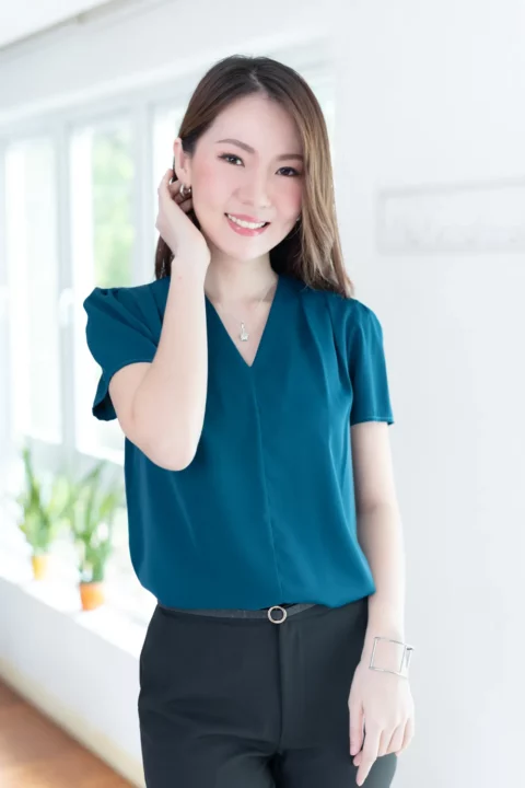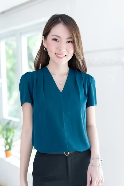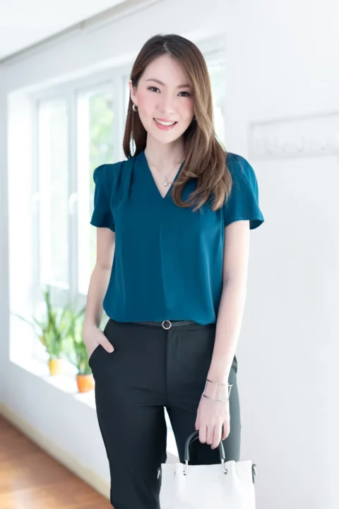 เสื้อทำงานคอวี ทรงสวยใส่แล้วผอม ต่อแขนกระบอก จับจีบบ่าและต้นแขนเบาๆ เนื้อผ้าเนียนลื่น คลาสสิกแบบละมุนละไม ใส่ได้ตลอดกาลจริงๆค่าา