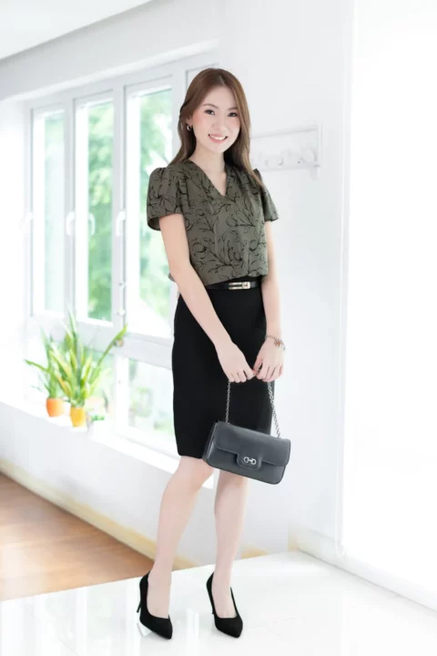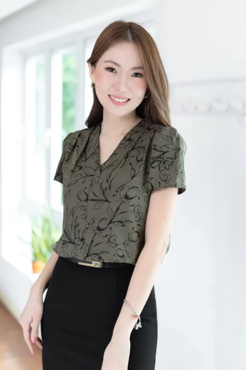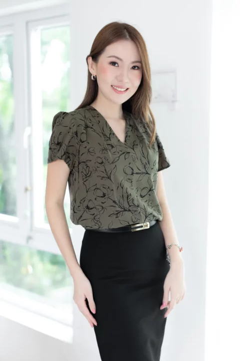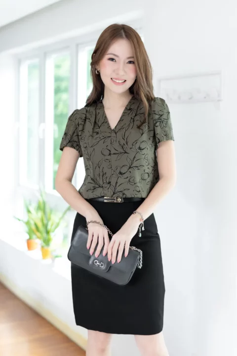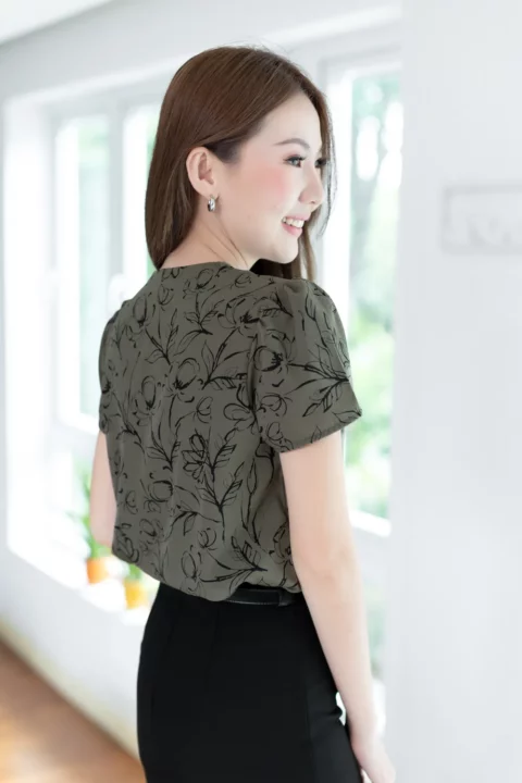 MT0601 V-Collar Frangipani Blouse – Dark Olive