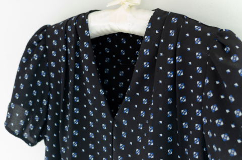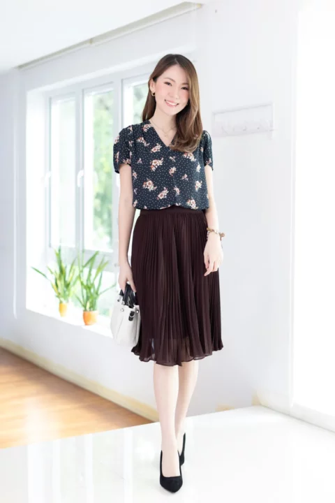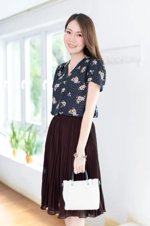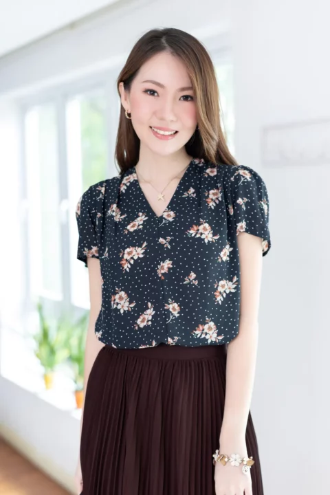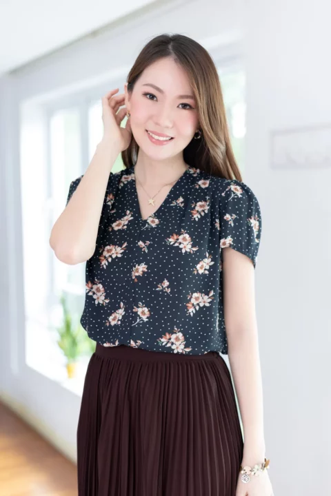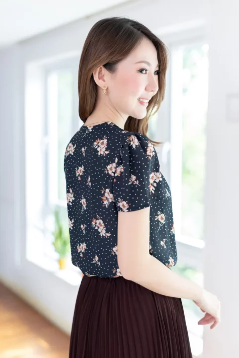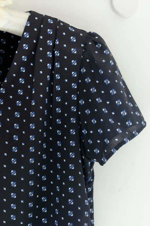 เสื้อทำงานคอวี ทรงสวยใส่แล้วผอม ผ้าชีฟองมาซ่าเนื้อไม่บางมาก ผ้าดีทิ้งตัว ลายพิมพ์กราฟิกเล็กๆ ต่อแขนกระบอก จับจีบบ่าและต้นแขนเบาๆ คลาสสิกแบบละมุนละไม ใส่ได้ตลอดกาลจริงๆค่าา
