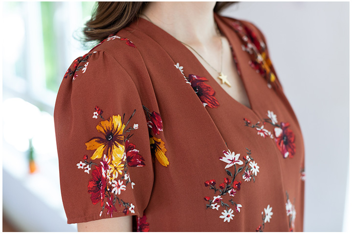 เสื้อทำงานคอวี ทรงสวยใส่แล้วผอม ผ้าชีฟองเนื้อดีทิ้งตัว พิมพ์ลายดอกไม้ ต่อแขนกระบอก จับจีบบ่าและต้นแขนเบาๆ คลาสสิกแบบละมุนละไม ใส่ได้ตลอดกาลจริงๆค่าา