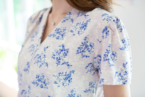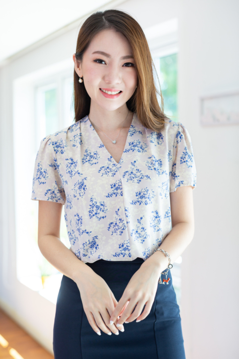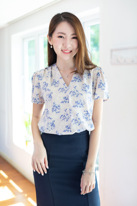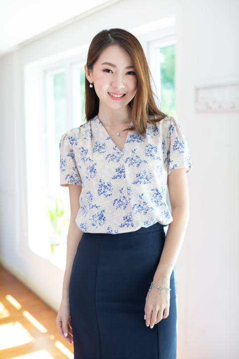 เสื้อทำงานคอวี ทรงสวยใส่แล้วผอม ลายพิมพ์ผ้ากระจุ๋มกระจิ๋ม ลายดอกไม้เล็กๆทั่วตัว ต่อแขนกระบอก จับจีบบ่าและต้นแขนเบาๆ คลาสสิกแบบละมุนละไม ใส่ได้ตลอดกาลจริงๆค่าา