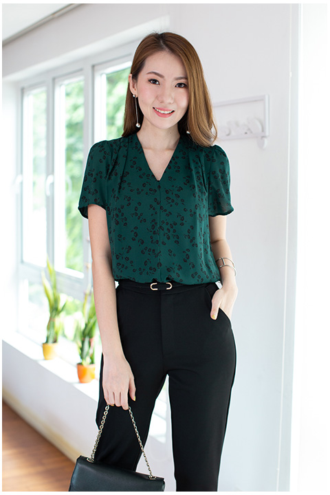 MT0601 V-Collar Chiffon Blouse – Forest Green