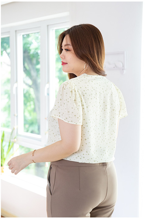 เสื้อทำงานคอวี ลายผ้ากระจุ๋มกระจิ๋ม ลายดอกไม้เล็กๆทั่วตัว ต่อแขนกระบอก จับจีบบ่าและต้นแขนเบาๆ คลาสสิกแบบละมุนละไม ใส่ได้ตลอดกาลจริงๆค่าา