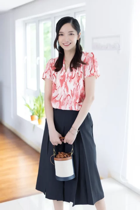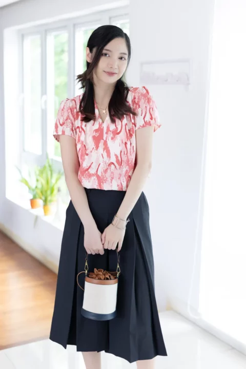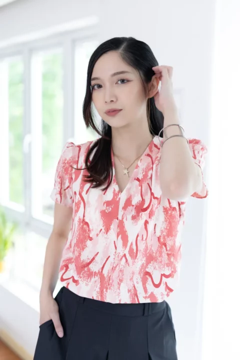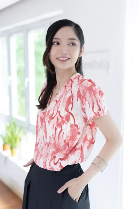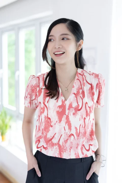 เสื้อทำงานคอวี ทรงสวยใส่แล้วผอม ต่อแขนกระบอก จับจีบบ่าและต้นแขนเบาๆ เนื้อผ้าเนียนลื่น ลายกราฟิก คลาสสิกแบบละมุนละไม ใส่ได้ตลอดกาลจริงๆค่าา