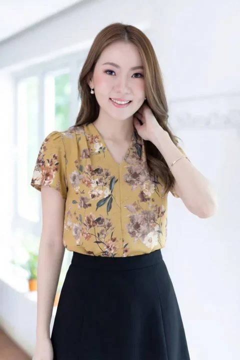 เสื้อทำงานคอวี ทรงสวยใส่แล้วผอม ต่อแขนกระบอก จับจีบบ่าและต้นแขนเบาๆ เนื้อผ้าเนียนลื่น คลาสสิกแบบละมุนละไม ใส่ได้ตลอดกาลจริงๆค่าา