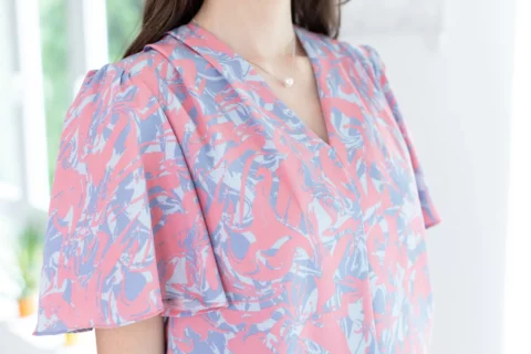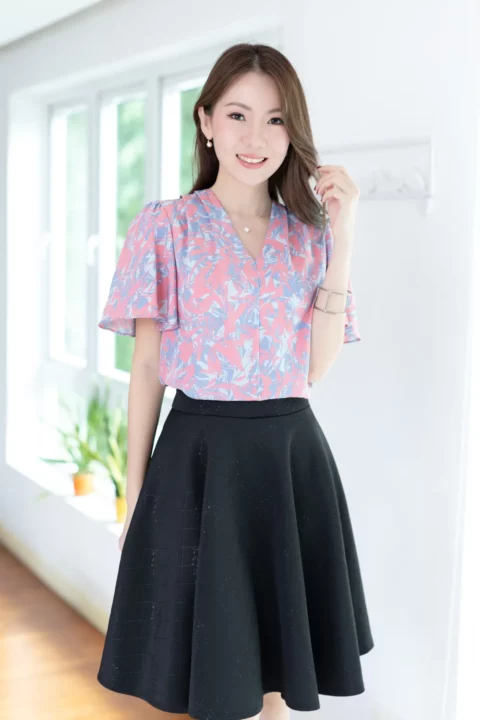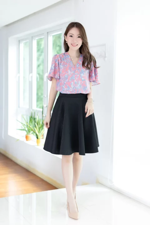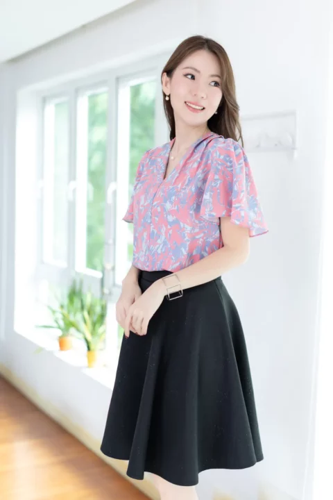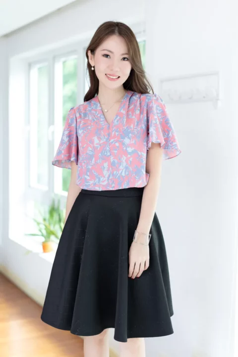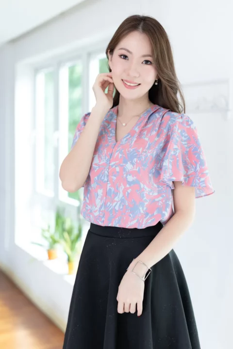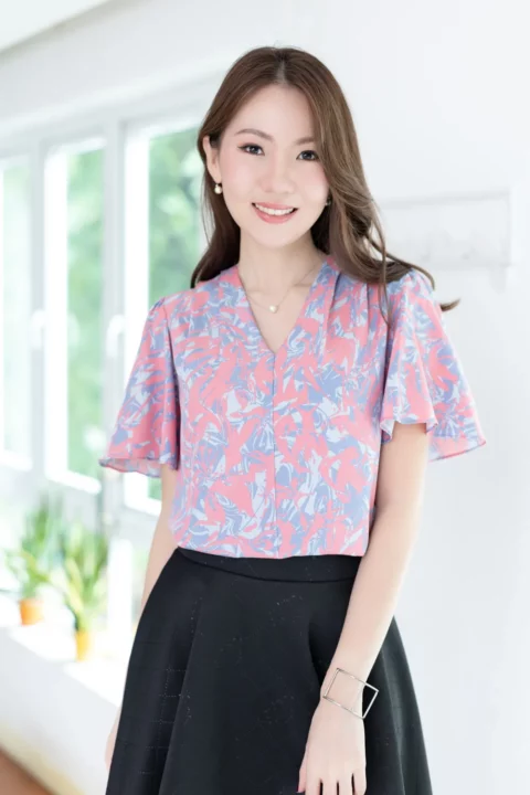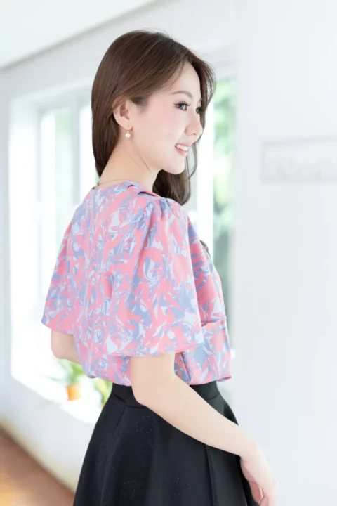 เสื้อทำงานคอวี จับจีบบ่าและต้นแขนเบาๆ แขนผีเสื้อพลิ้วสวยปิดต้นแขน เนื้อผ้าไหมอิตาลีเนียน สีสวย ทรงคลาสสิคใส่ได้หลายโอกาส