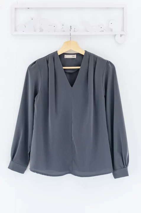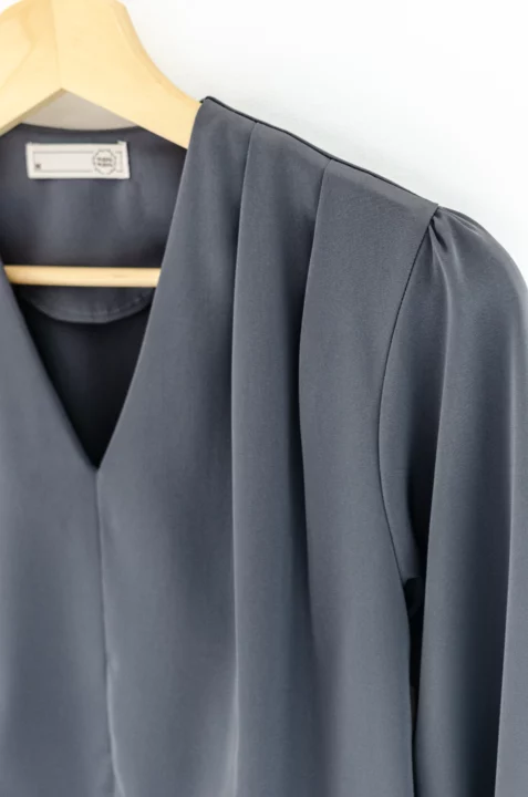 เสื้อทำงานคอวี ทรงสวยใส่แล้วผอม ต่อแขนยาว จับจีบบ่าและต้นแขนเบาๆ เนื้อผ้าเนียนลื่นไม่หนา แต่ไม่บางโปร่งแสง คลาสสิกแบบละมุนละไม ใส่ได้ตลอดกาลจริงๆค่าา