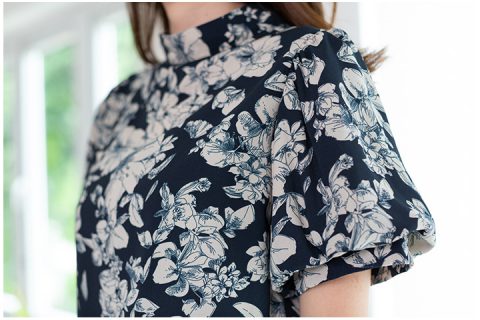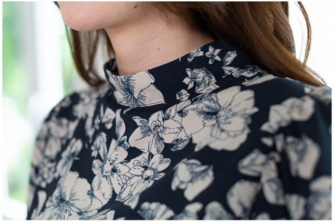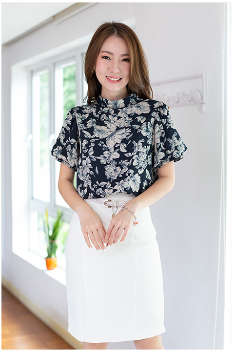 เสื้อคอปิดขอบตั้งๆ ใช้ผ้าเนื้อนิ่มมม พิมพ์ลายดอกไม้ แขนทรงบอลลูนพองกำลังสวย ด้านหลังเจาะหยดน้ำติดกระดุม ลายสวยหวาน งานดีงาม