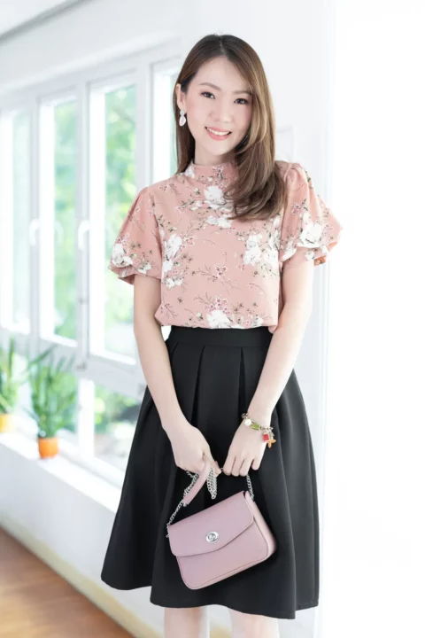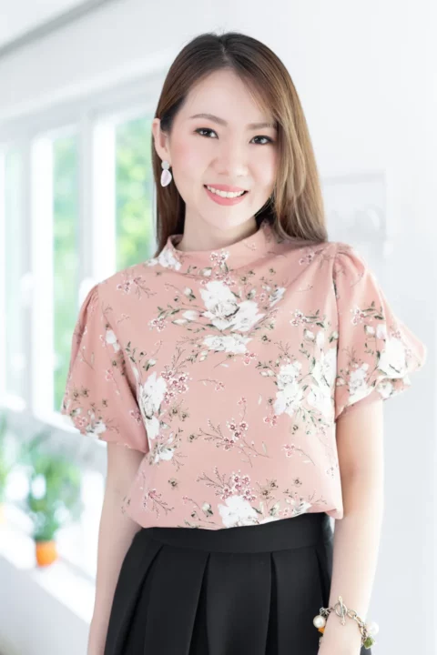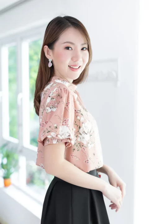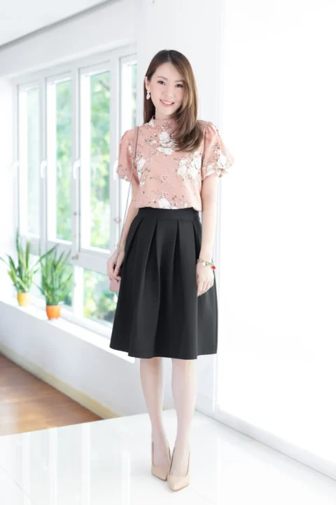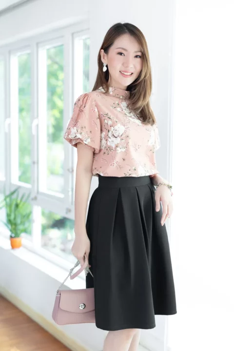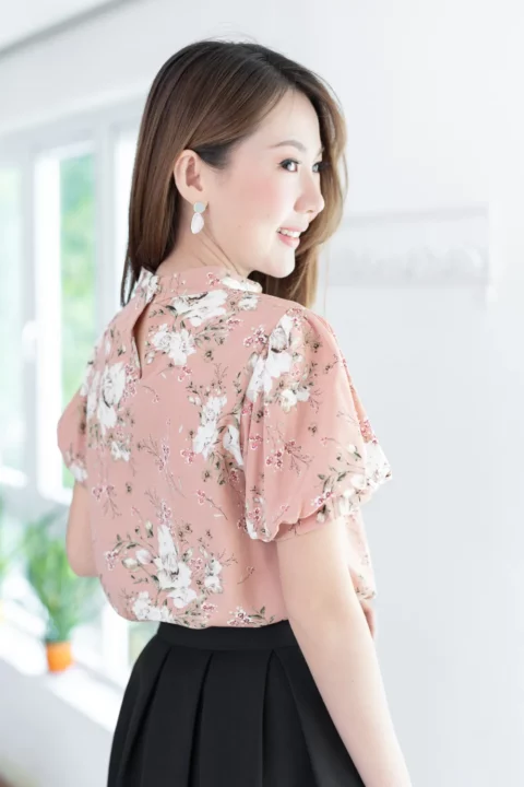 เสื้อคอปิดขอบตั้งๆ ผ้าอิตาลี นิ่มเนียน สัมผัสดีสุดๆ ทรงคลาสสิค แขนทรงบอลลูนพองกำลังสวย ด้านหลังเจาะหยดน้ำติดกระดุม งานดีงาม