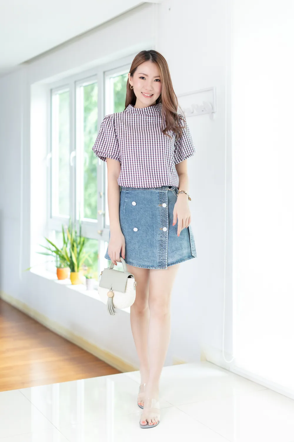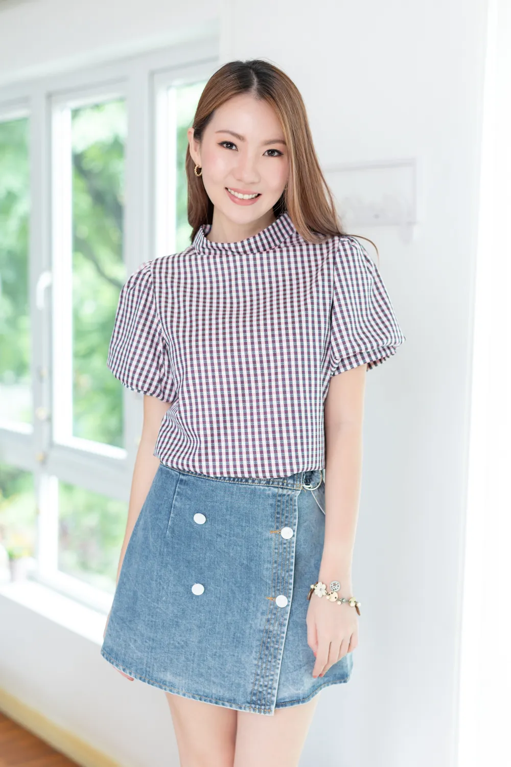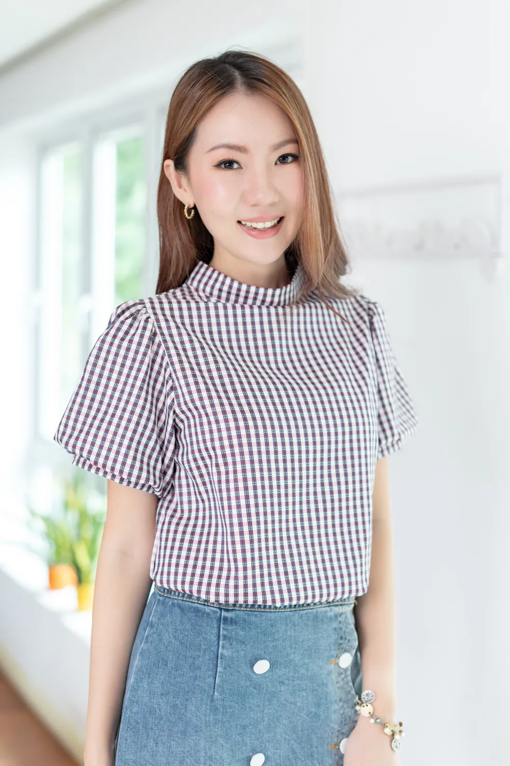เสื้อคอปิดขอบตั้งๆ ผ้าทอลายตารางเนื้อสวยมากมี Textured ในตัว เนื้อไม่หนามาก ไม่บางเกินไป สัมผัสดีสุดๆ ทรงคลาสสิค แขนทรงบอลลูนพองกำลังสวย ด้านหลังเจาะหยดน้ำติดกระดุม งานดีงาม