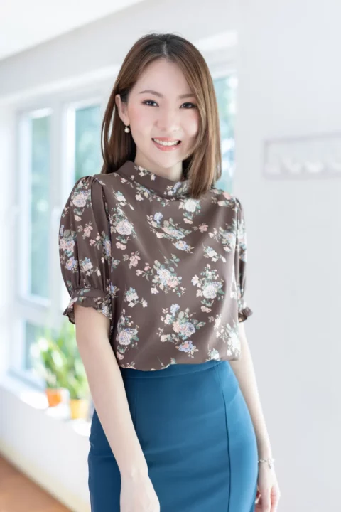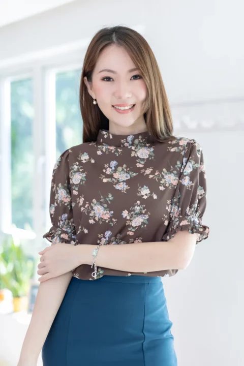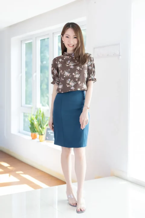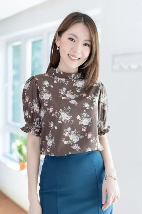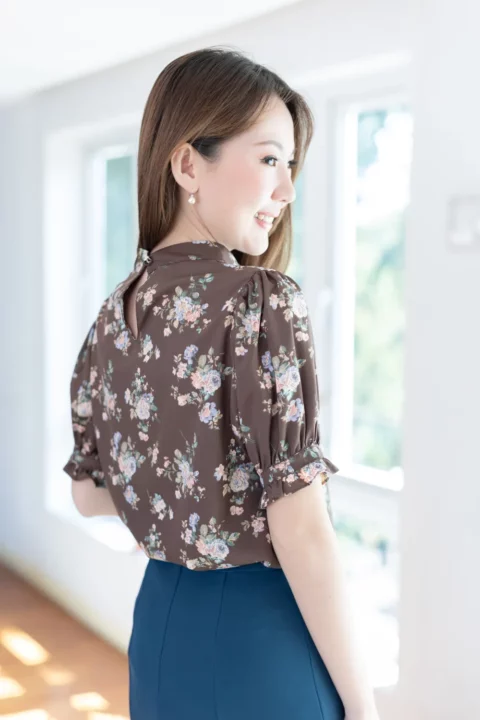 รุ่นนี้เน้นความสุภาพ ความคลาสซี่ ทรงคอปิด ตั้งๆหน่อยนึง ตัวเสื้อไม่ยาวมาก นุ่งทับแนะนำใส่คู่เอวสูง แขนสั้นแบบไม่สั้นมาก ความยาวเกือบๆถึงข้อศอก พร้อมแต่งระบายปลายแขน ด้านหลังเจาะหยดน้ำติดกระดุม ใช้ผ้าไหมอิตาลี นิ่มเนียน สัมผัสดีสุดๆ ใส่แล้วเป็นสาวเรียบร้อย อ่อนโยน