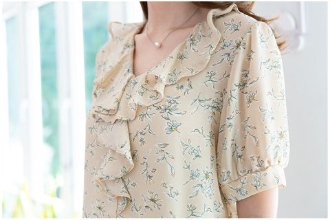 เสื้อทำงานสวยหวาน แต่งระบายช่วงคอ ทิ้งตัวยาวลงด้านหน้า งานพลิ้วๆผ้าทิ้งๆ ต่อแขนบอลลูนจับจีบแบบเบาๆ ผ้าเนียนนิ่ม ใส่สบายมากเลย