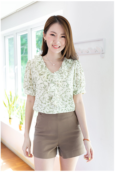 เสื้อทำงานสวยหวานลายเถาดอกไม้ แต่งระบายช่วงคอ ทิ้งตัวยาวลงด้านหน้า งานพลิ้วๆ ต่อแขนบอลลูนจับจีบแบบเบาๆ ผ้าเนียนนิ่ม ใส่สบายมากเลย