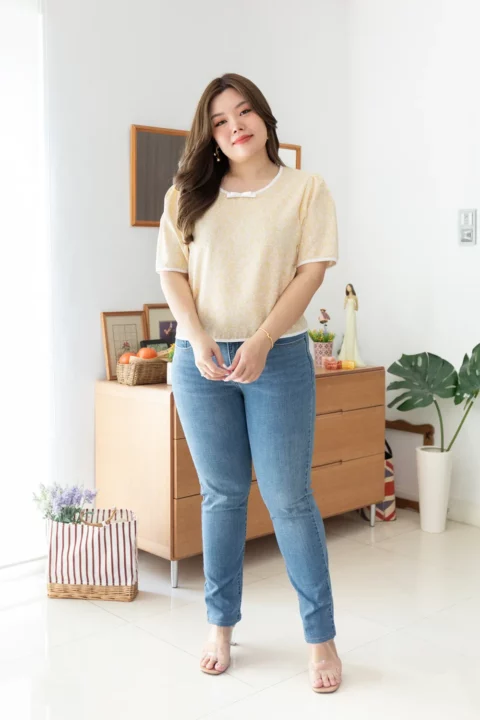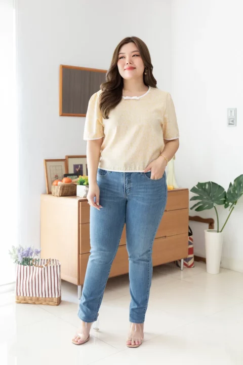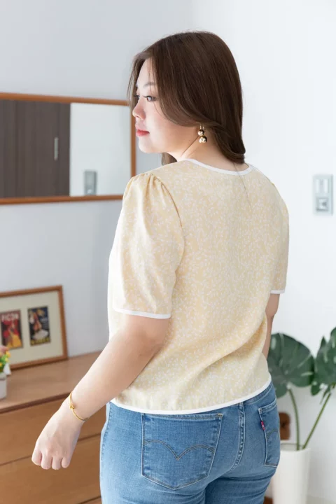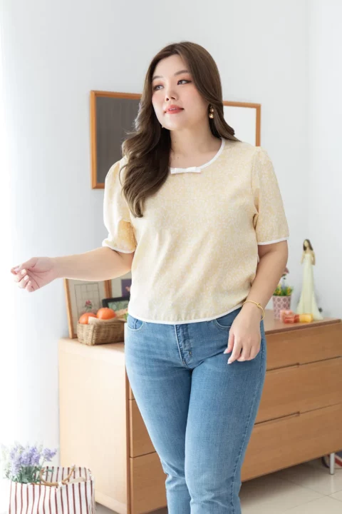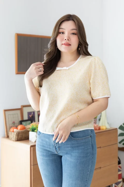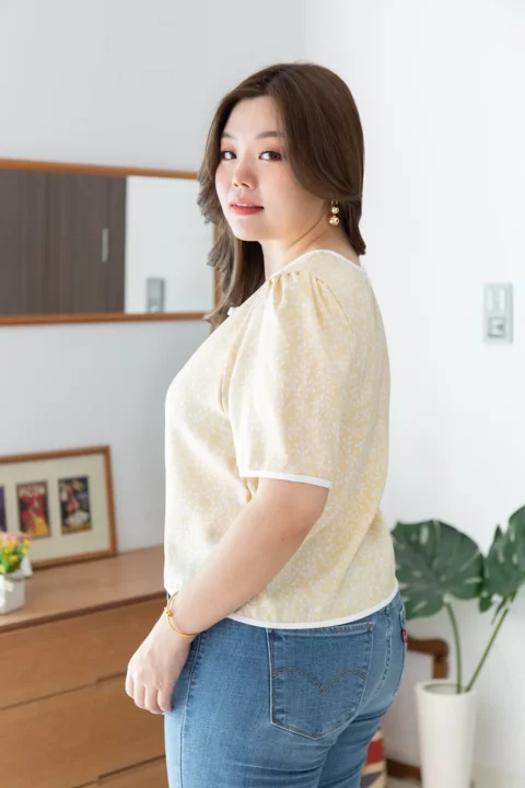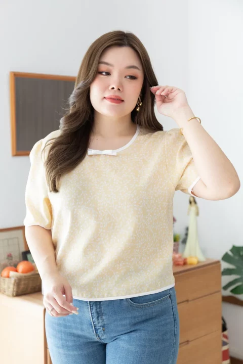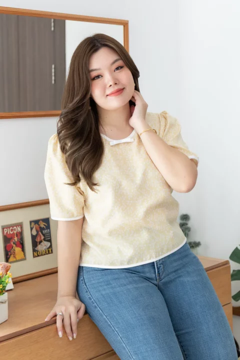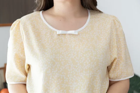 เสื้อทรงนี้ก็จะน่ารักหน่อยๆ คอกลม กุ๊นขอบ ประดับผ้ากุ๊นเป็นโบว์ซ้อน 2 ชั้น ทรงไม่สั้นไม่ยาว เป็นแบบสวมนะคะ ทรงวงแขนกว้างใส่สบายไม่ติดต้นแขน ผ้าไม่บางมาก(เนื้อจะหนากว่าชีฟอง) แต่ไม่หนาไป งานตัดเย็บคุณภาพ ใส่วันลำลองได้ ไปทำงานก็เริ่ด สุภาพเรียบร้อย เจอผู้ใหญ่ก็ดูน่าเอ็นดู