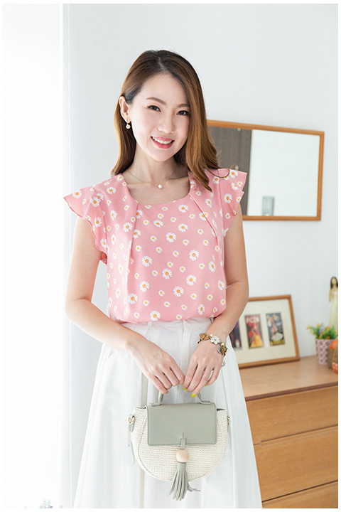 MT1111 Ruff Sleeve Sweet Daisy Blouse – Pink